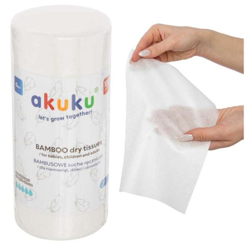 Sausos „Akuku“ servetėlės, pagamintos iš natūralių bambuko pluoštų, yra puikus pasirinkimas kasdienei kūdikių priežiūrai nuo pat pirmųjų gyvenimo dienų.