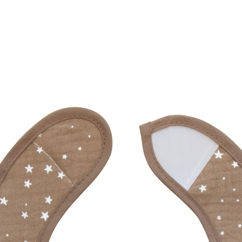 Muslinas – natūralus, lengvas ir hipoalerginis audinys, idealiai tinkantis jautriai kūdikių odai. Jis pasižymi puikiu pralaidumu orui, greitai sugeria drėgmę ir taip pat greitai džiūsta, todėl šie seilinukai yra ypač patogūs kasdieniam naudojimui.