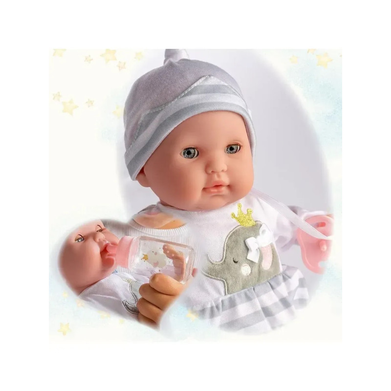 Šis unikalus vaikiškas žaislas išsiskiria tikroviška išvaizda, kurią užtikrina kruopščiai sukurtas veidas ir kūnas. Rankų darbo lėlę pagamino profesionalūs Ispanijos meistrai, naudodami šiuolaikines medžiagas ir technologijas.