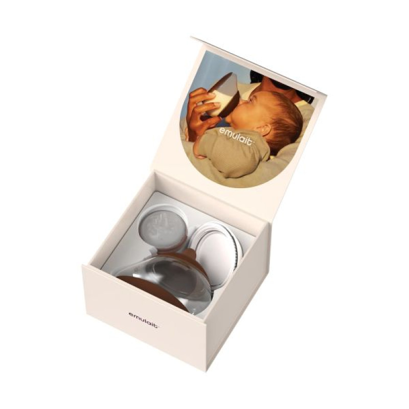 Rinkinyje yra: 240 ml buteliukas, „Emulait“ žindukas , dangtelis, kamštelis ir