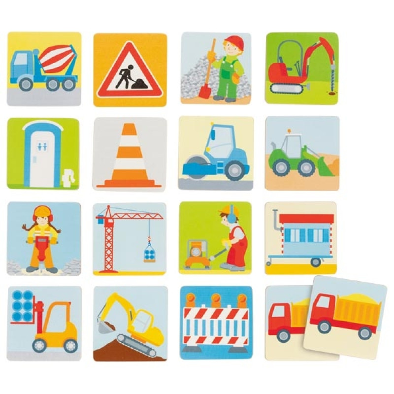Šis įdomus atminties žaidimas statybvietės tema – puikus būdas lavinti vaikų atmintį, dėmesį ir loginį mąstymą. Rinkinyje yra 32 kortelės su statybvietės elementais: ekskavatoriais, kranais, sunkvežimiais, plytomis ir kitais su statyba susijusiais daiktais. Žaidėjai varto korteles ir ieško porų su atitinkamais paveikslėliais. Žaidimas padeda vaikams lavinti susikaupimą, dėmesį detalėms ir mokytis žaidžiant.