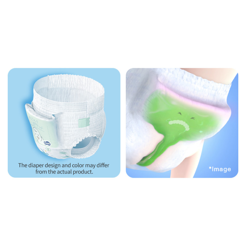 • Drėgmės indikatorius: Speciali linija sušlapus pasikeičia į melsvai žalią spalvą, todėl galite greitai pasakyti, kada laikas keisti sauskelnes.