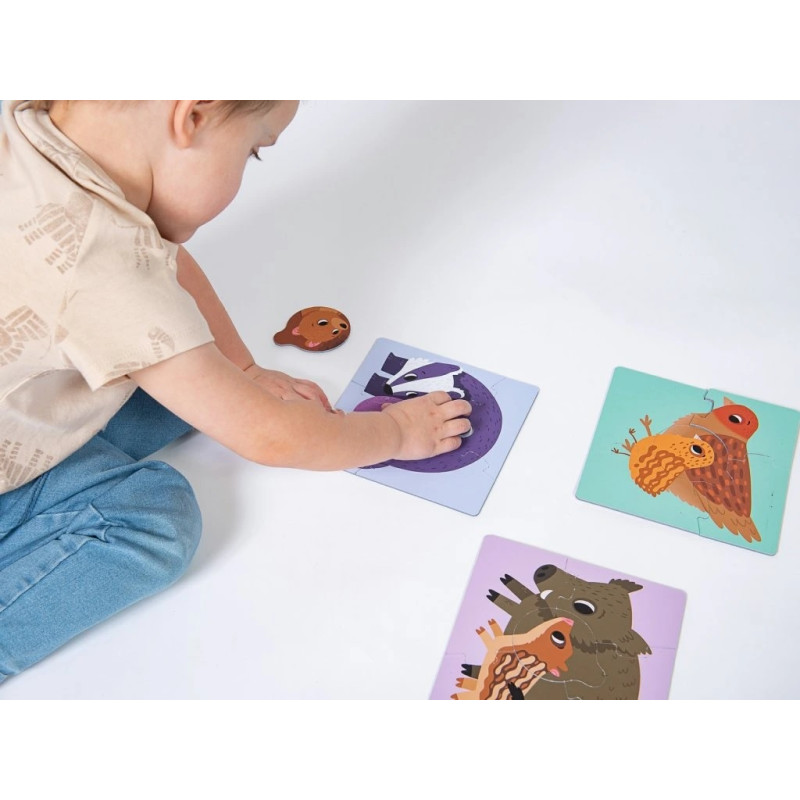 Kiekvienas gyvūnas suskirstytas į 5 gabaliukus – vaikai sutapatina mamą su jos mažyliu.
