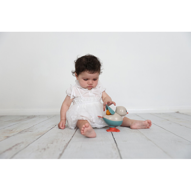 Ryškus ugdomasis žaislas, kuris tikrai patiks mažyliui! Viščiukė turi minkštas „cypsinčias” kojeles ir judamus elementus. Paspauskite ant liemens – galva juokingai iššoks į viršų. Paspauskite ant uodegos – pasirodys mažas viščiukas! Žaidimas virsta linksmu priežastinių ryšių tyrinėjimu.