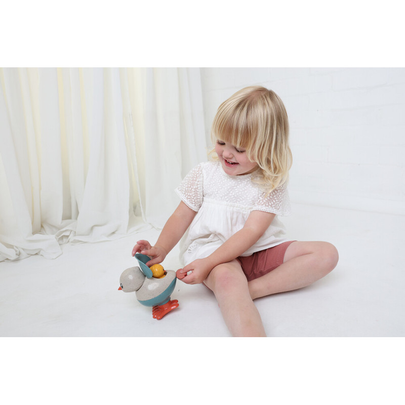 Žaislas pagamintas iš ekologiško bioplastiko, kurio pagrindas yra kviečių šiaudai – saugi ir aplinkai draugiška medžiaga.