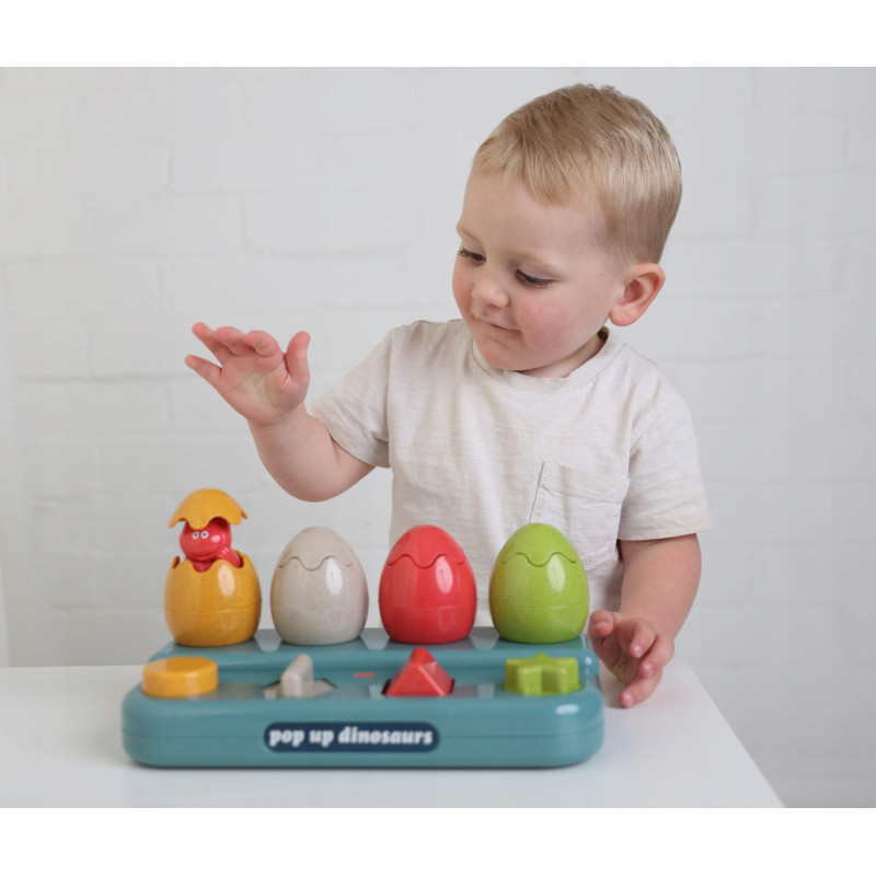 Tolo Bio Pop Up yra įdomus ir paprastas naudoti žaislas, kuris siūlo kelis būdus, kaip dinozaurai gali iššokti iš kiaušinių! Jūsų mažylis galės stebėti, kaip dinozaurai išsirita iš savo „kiaušinių“, linksmindamasis ir mokydamasis įvairių formų ir spalvų.