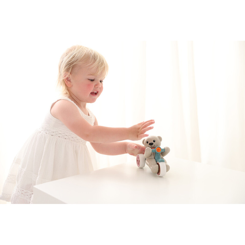 Šis mielas Tolo Bio meškiukas – idealus žaislas mažiesiems, kurie pradeda pažinti aplinką. Dėl laisvo judėjimo funkcijos ir pasukamos galvos su spragtelėjimu meškiukas judėdamas skleidžia malonų garsą. Paspauskite jo galvą, ir jis pradės judėti, suteikdamas jūsų mažyliui daug džiaugsmo.