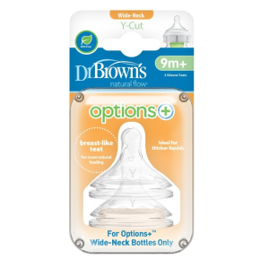 Žindukų forma panaši į mamos krūties anatomiją natūralesniam maitinimui. Kūdikiui lengviau pereiti nuo krūties prie buteliuko ir grįžti atgal, neatprantant. Laikas keisti žinduką, jeigu maitinant Jūsų kūdikis springsta, jam sunku nuryti, kosėja, pienas valgant bėga iš burnytės, atsisako buteliuko, sunku traukti, ilgiau valgo, vangus ar sudirgęs valgymo metu, maitinamas užmiega.Tinka tik „Dr.Brown’s“ plataus kaklelio „Options+“ buteliukams. Be bisfenolio BPA.