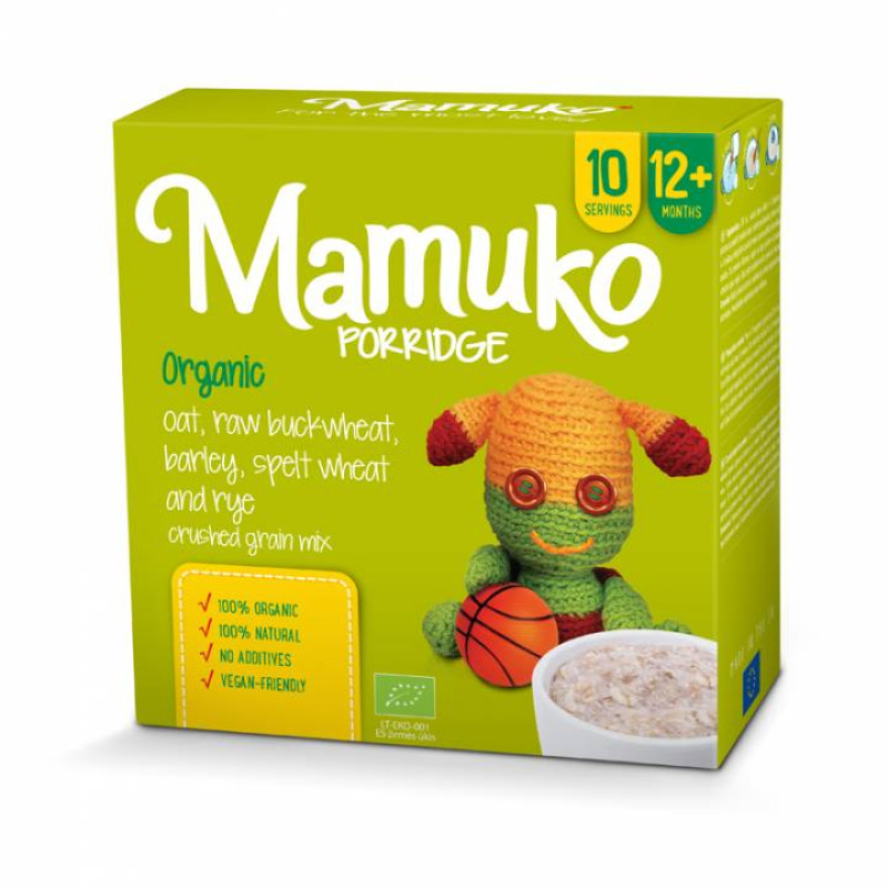 MAMUKO Ekologiška traiškytų miežių, spelta kviečių, rugių, žaliųjų grikių ir avižų košė 240g