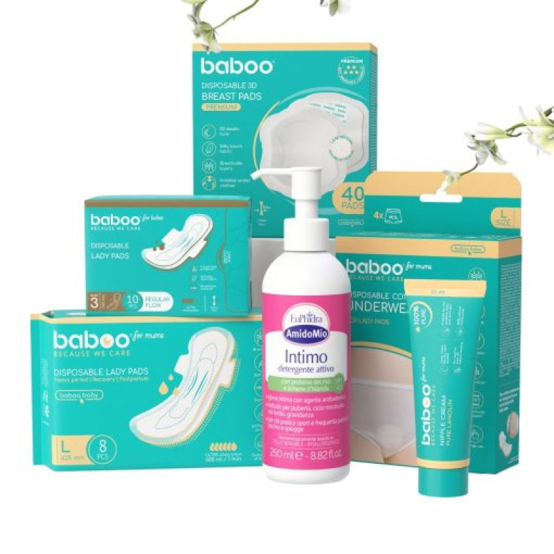 Ruošiatės laikotarpiui po gimdymo? BABOO® pogimdyvinės priežiūros produktai specialiai sukurti, kad jaunoms mamoms suteiktų komfortą, higieną ir ramybę – būtent tada, kai tai ypač svarbu.