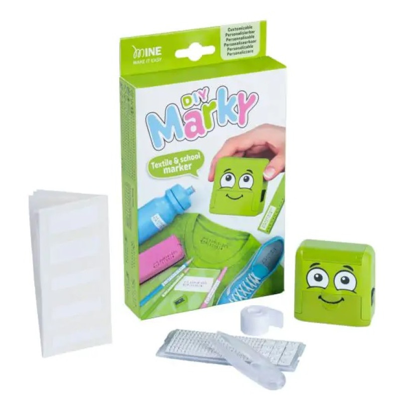 MARKY padeda visam laikui pamiršti daiktų praradimo ir supainiojimo problemą. Marky štampas gaminamas Austrijoje. Komplekte yra ne tik pats štampas, bet ir pilnas abėcėlės raidžių rinkinys bei stilingos piktogramos. Komplekte taip pat yra pincetas, terminė juosta tamsiems audiniams ir indaplovėje atsparūs lipdukai.