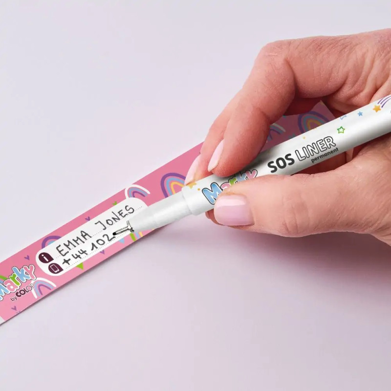 „Marky SOS“ apyrankių rinkinys – tai patikimas sprendimas jūsų vaiko saugumui užtikrinti. Tiesiog užrašykite ant apyrankės kontaktinius duomenis pridedamu žymekliu ir galėsite būti ramūs bet kokioje situacijoje – pasivaikščiojimo, kelionės, stovyklos ar pramogų parko metu.