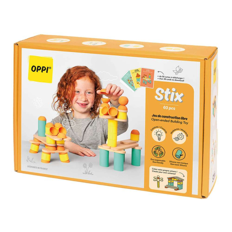„OPPI Stix“ konstruktoriaus rinkinys yra novatoriškas, daugiafunkcis žaislas, skirtas lavinti vaikų susikaupimą, motorinius įgūdžius ir kūrybiškumą. Unikalus medinių ir silikoninių elementų derinys siūlo naują požiūrį į žaidimą bei skatina vaikus eksperimentuoti ir laisvai konstruoti.