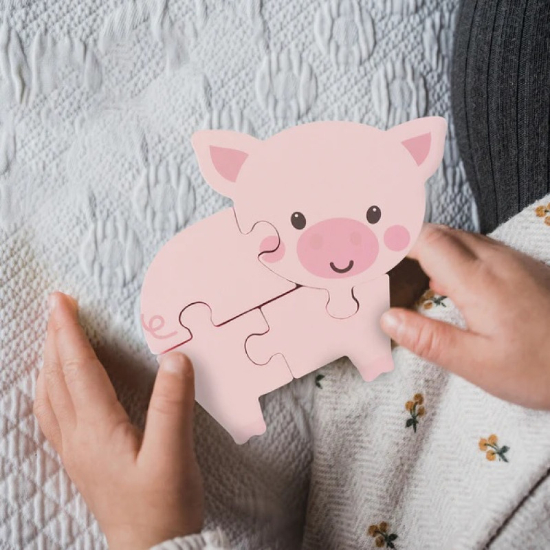 Ši didelė medinė kiaulės dėlionė idealiai tinka mažoms rankytėms ir smagiai surenkama.
