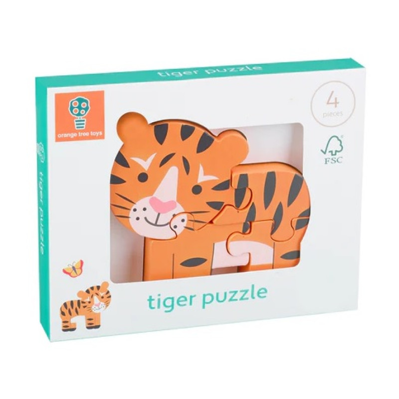 Ši didelė medinė tigro dėlionė idealiai tinka mažoms rankytėms ir yra smagi surinkinėti.