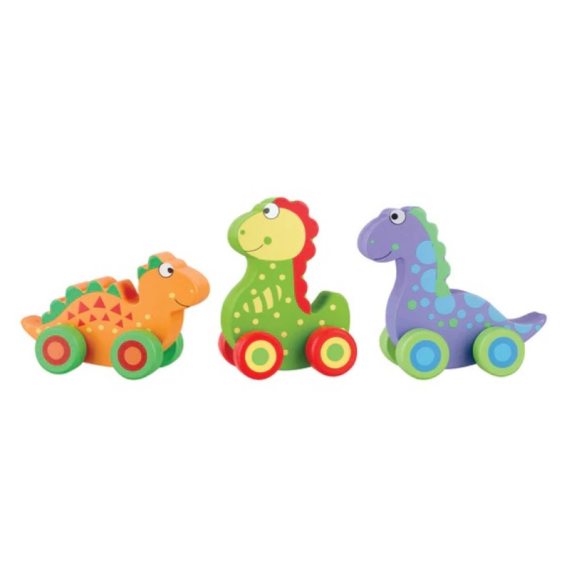Šis gražus medinių žaislinių dinozaurų rinkinys yra puikus pirmasis medinis žaislas mažoms rankytėms. Rinkinį sudaro 3 ryškiaspalviai dinozaurai.