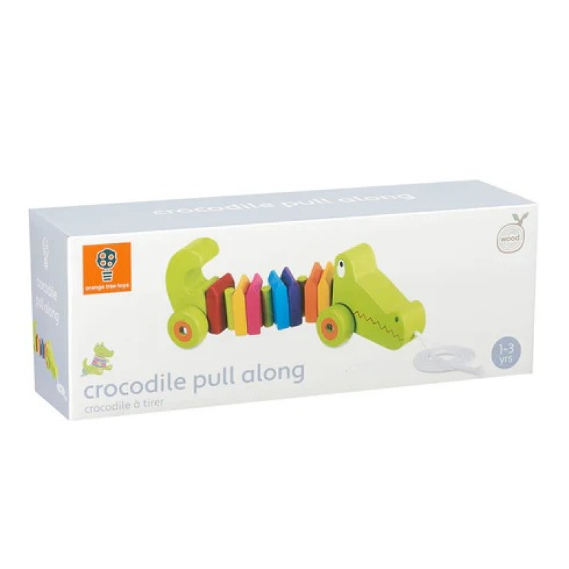 Medinis traukiamasis krokodilas nudažytas ryškiomis spalvomis. Šis mielas krokodilas seks paskui jus, kai jį trauksite, todėl tai puikus būdas paskatinti vaikelį žengti pirmuosius žingsnelius.