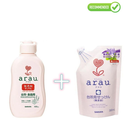 Arau Skystis vaikiškų indų plovimui 400ml + užpildas 380ml