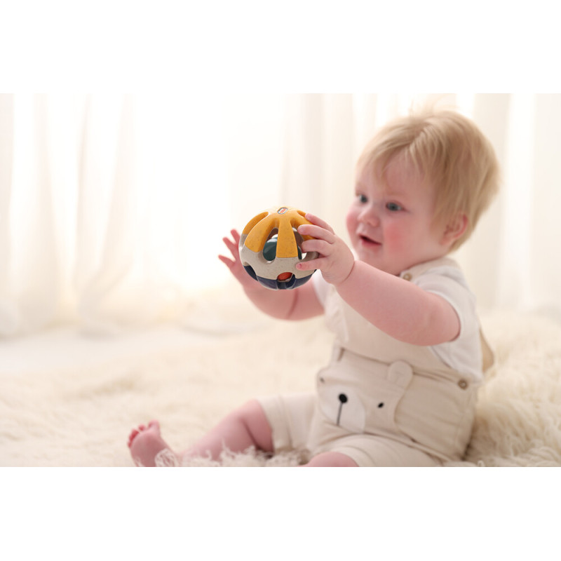 Tolo Bio Barškutis – tai ryškus kamuoliukas su maloniu garsu, kuris sukurs pirmąsias kūdikio įspūdžius apie ridenimą ir bendrą žaidimą. Ridenimas skirtas stimuliuoti garsų ir judesio suvokimą. Puikiai tinka žaisti vaikų kambaryje, lauke ar vonioje.