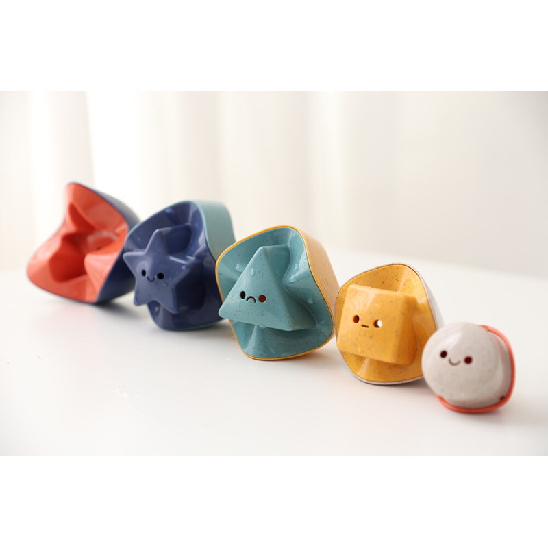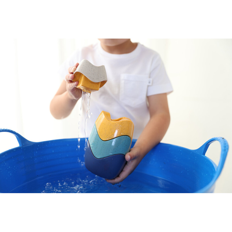 Piramidė lengvai sulankstoma. Ryški ir spalvinga, ji idealiai tinka žaidimams vonioje, sode ar paplūdimyje. Įvairios spalvos ir tekstūros padeda stimuliuoti vaiko suvokimą.