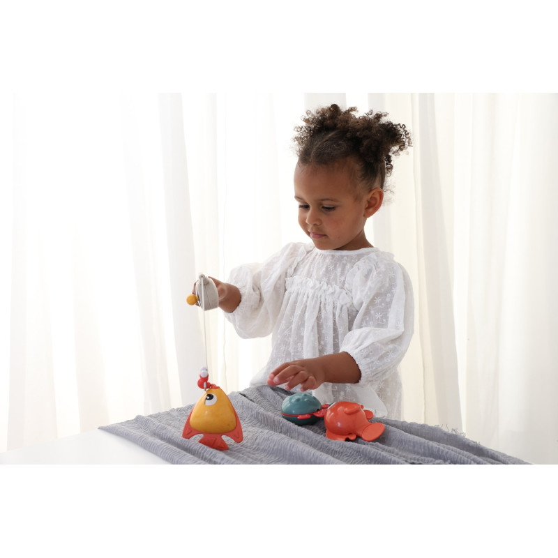 Šis vonios žaislas suteiks jūsų mažyliui daug džiaugsmo. Užmeskite kabliuką, sugaukite žuvį ir traukite ją virve! Panardinkite žuvį į vandenį ir stebėkite, kaip ji pradeda išleisti burbuliukus. Komplekte yra mielas magnetinis kirminas, kuris padės pritraukti žuvį!