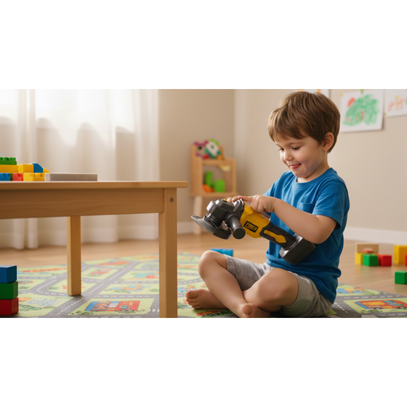 Žaislas pagamintas iš aukštos kokybės, patvaraus ir netoksiško plastiko. Jis pasižymi patogia rankena ir tikroviškais šviesos bei garso efektais, kurie sukuria tikro įrankio naudojimo pojūtį. Įjungus įsijungia šviesos ir pasigirsta būdingas darbo garsas – vaikas pasijunta tikru meistru!