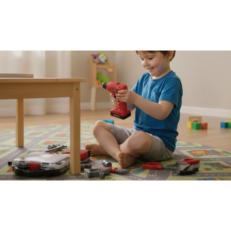 Dėklas su žaisliniu atsuktuvu ir kitais įrankiais yra puiki dovana bet kuriam mažam berniukui. Dabar jis gali padėti tėčiui arba pats atlikti „smulkius remonto darbus“ namuose. Platus įrankių pasirinkimas (37 dalys) padeda vaikams išmokti skirtingų įrankių pavadinimų, žymiai praplėsdamas jų žodyną. Visi daiktai pagaminti iš saugaus plastiko. Patogus dėklas išsprendžia visų žaidimo rinkinio dalių laikymo problemą.