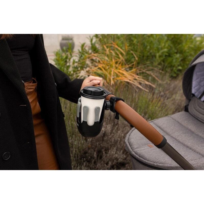 Lankstus puodelių laikiklis skirtas kūdikių buteliukams, kavos puodeliams ir didesniems vandens buteliukams iki 8,5 cm skersmens. 360° besisukanti sistema gali būti pritvirtinta prie beveik bet kurio vežimėlio rankenos dėl lengvo tvirtinimo su Velcro lipnia juosta. Unikali, moderniai atrodanti penkių pirštų sistema užtikrina geresnį puodelio ar buteliuko stabilumą, apsaugodama nuo atsitiktinio išsiliejimo.