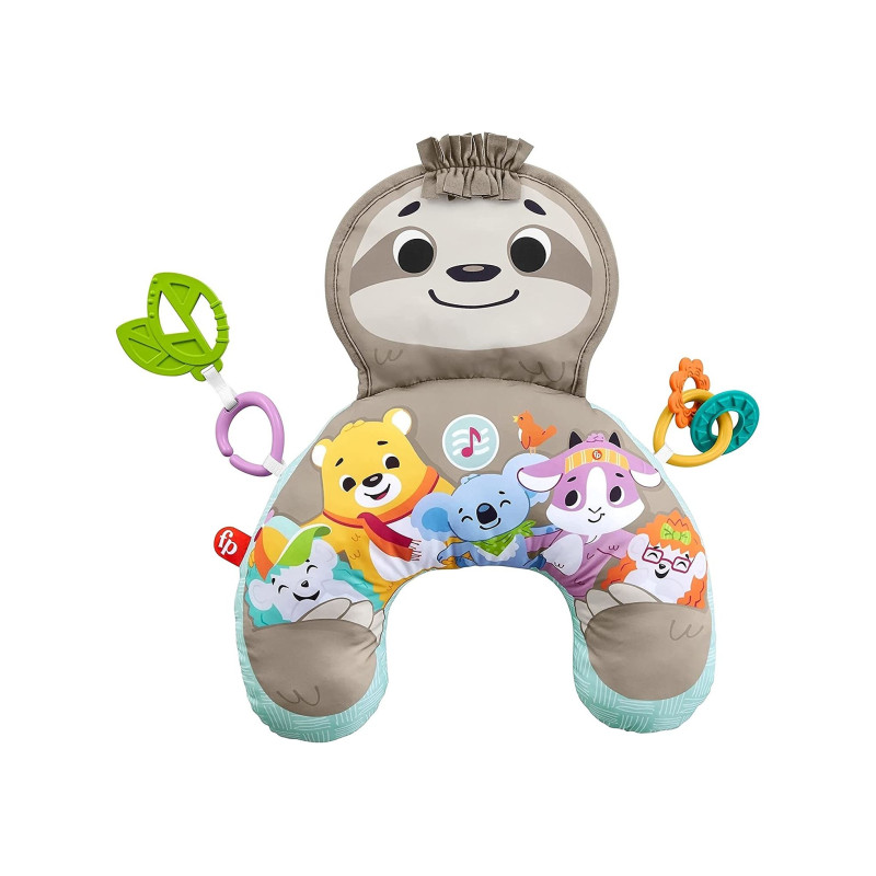 Pagalvė skirta žaidimams ant pilvuko “Smagus tinginys” yra minkšta didelio tinginio formos pagalvė su galimybe groti iki 10 minučių muzikos ir vibruoti, kad padėtų kūdikiui nusiraminti ir susikaupti, kai jis paguldytas ant pilvuko. Vaikas laikys galvą aukštyn ir bandys pakilti, kad galėtų bendrauti su žaislais. Šis pratimas stiprina kaklo ir liemens raumenis.