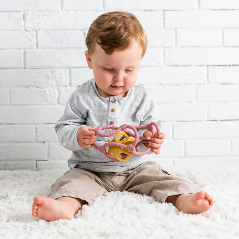 - Minkštas silikoninis kramtomas žaislas siūlo jūsų vaikui būdą numalšinti dantų dygimo skausmą.