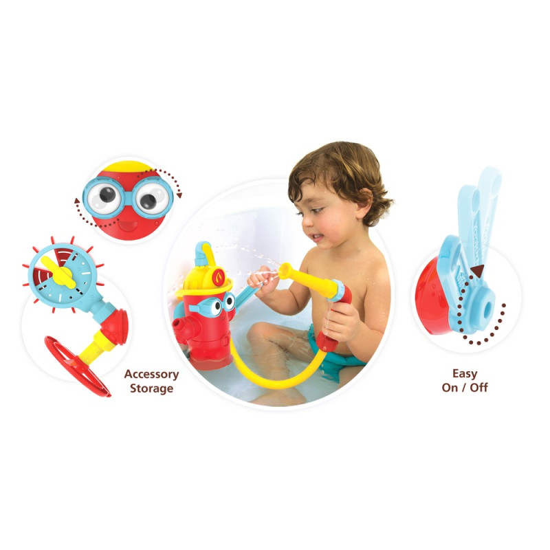 Šis besisukantis vonios žaislas purškia ir pilsto vandenį! Komplekte yra keli priedai: purškimo antgalis, vandens skaitiklis ir ratas, jie jungiasi prie Fredžio šalmo ar plaktuko. Nesibaigiantis tyrinėjimas, pažinimo džiaugsmas ir linksmybės!