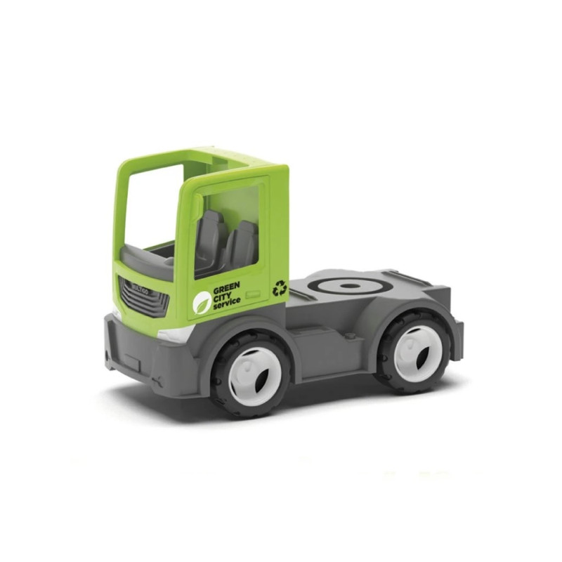 Dėka specialaus fiksavimo mechanizmo, vaikai gali lengvai keisti priedus ant bazinės transporto priemonės ir kurti naujus mašinų tipus.