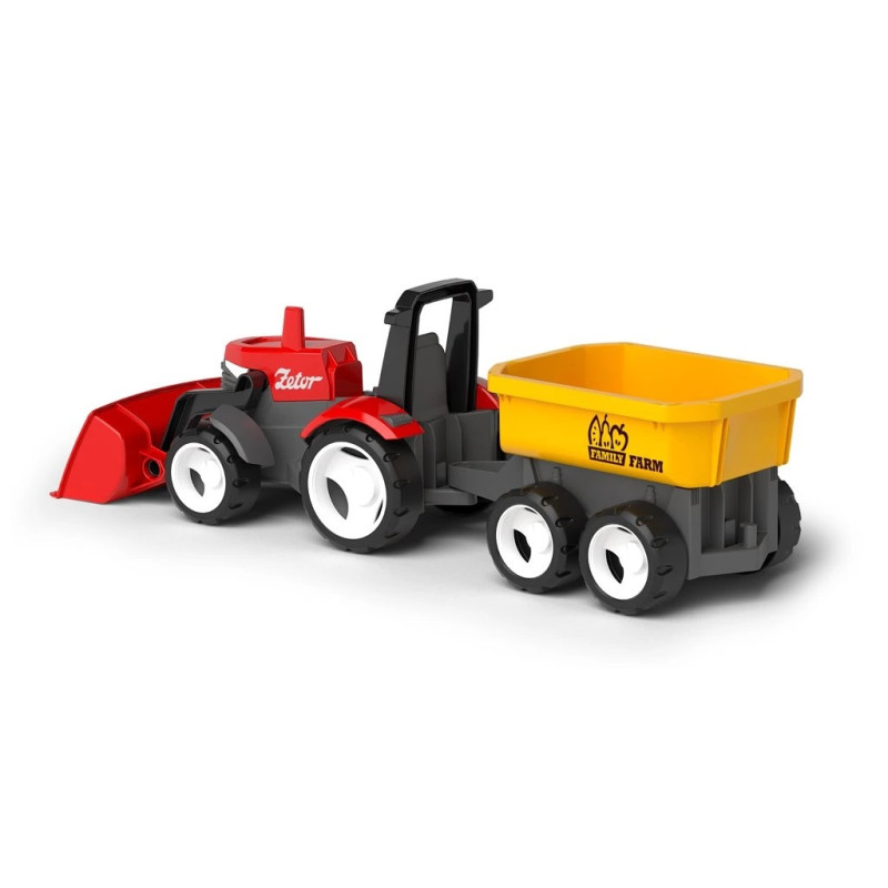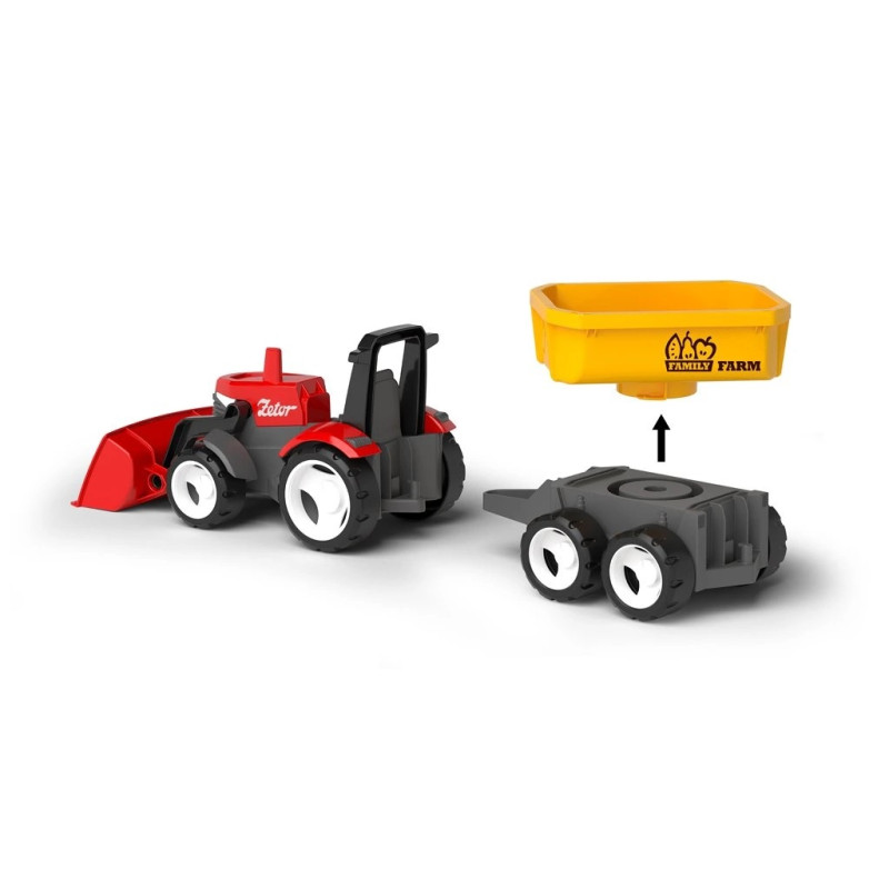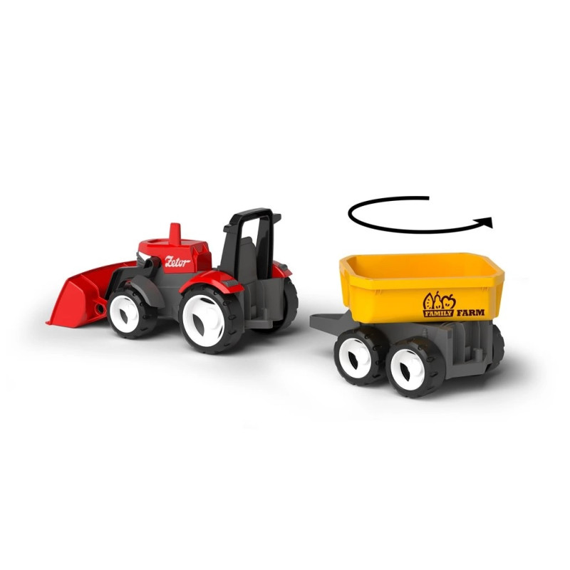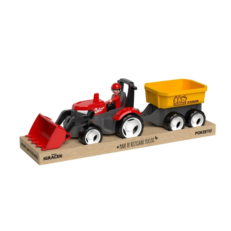 Traktoriaus rinkinys išskirtine raudona spalva su traktoriaus vairuotojo figūrėle pradžiugins visus jaunuosius mašinų entuziastus.