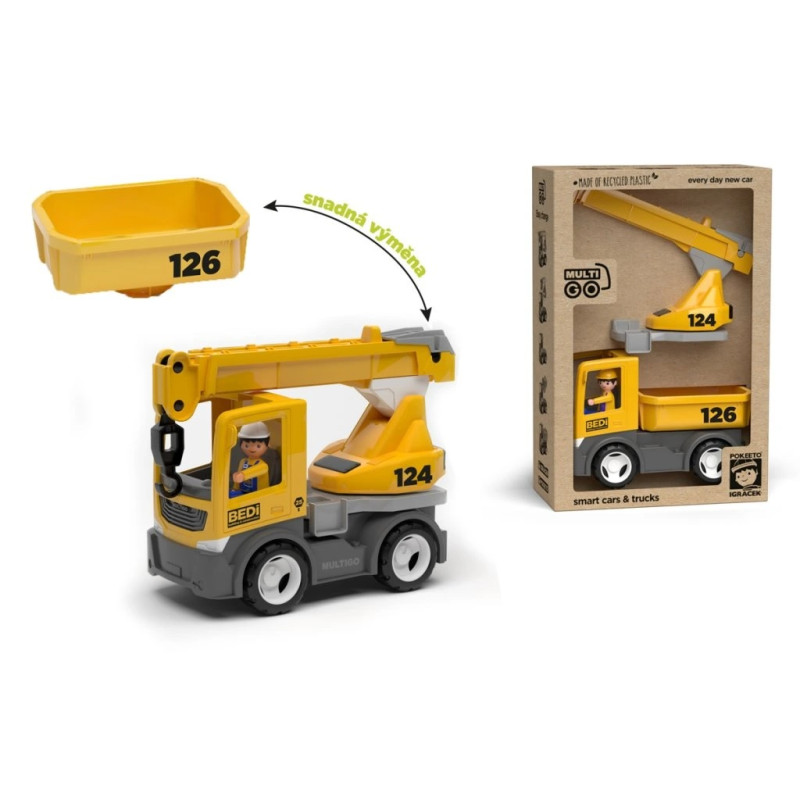 - Vaikai gali greitai transformuoti kraną į sunkvežimį ar kitą statybinę mašiną.