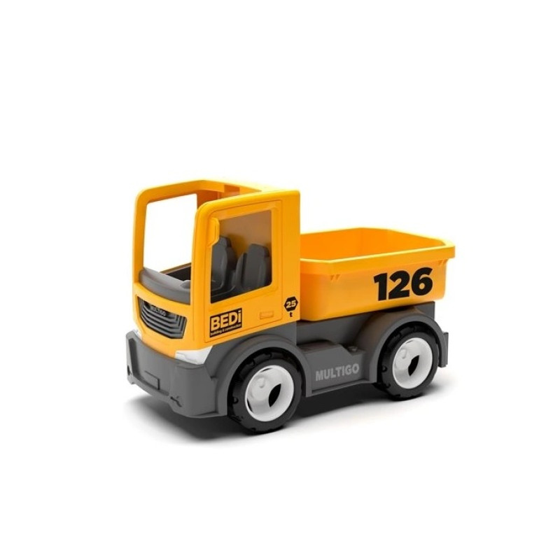 - Sunkvežimio važiuoklė turi specialią fiksavimo sistemą, leidžiančią vaikams keisti priedus paprastu pasukimu.