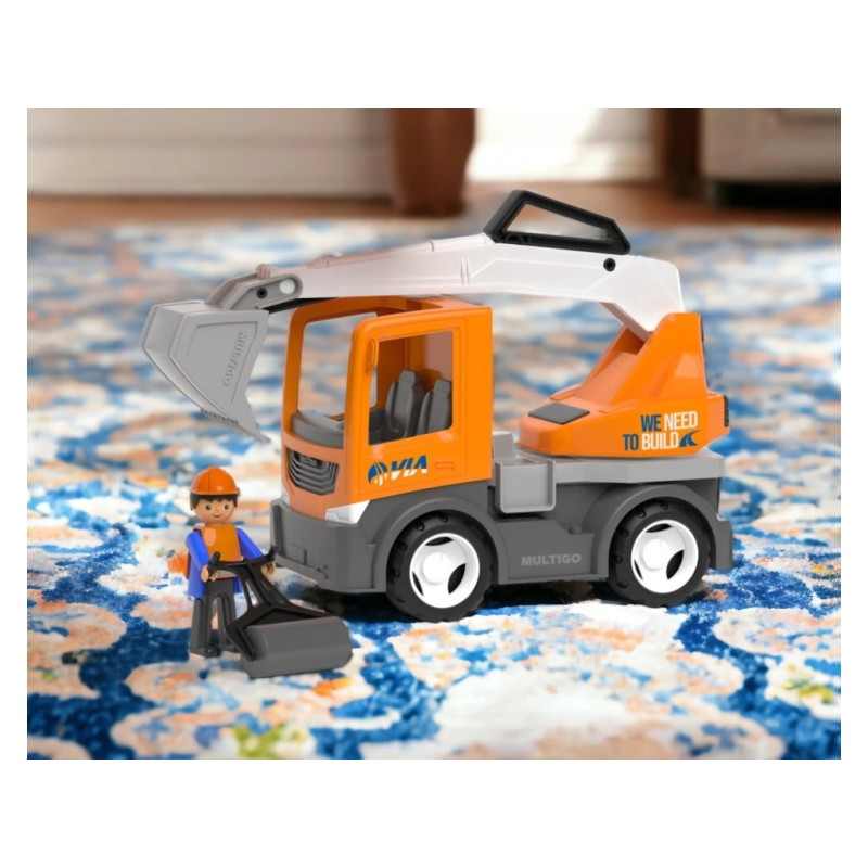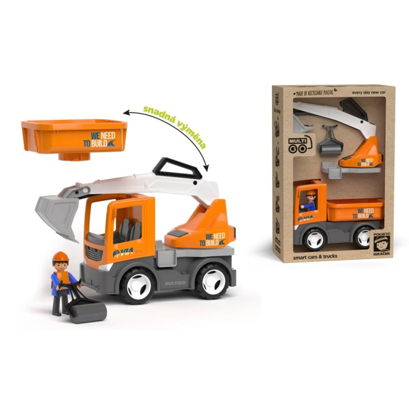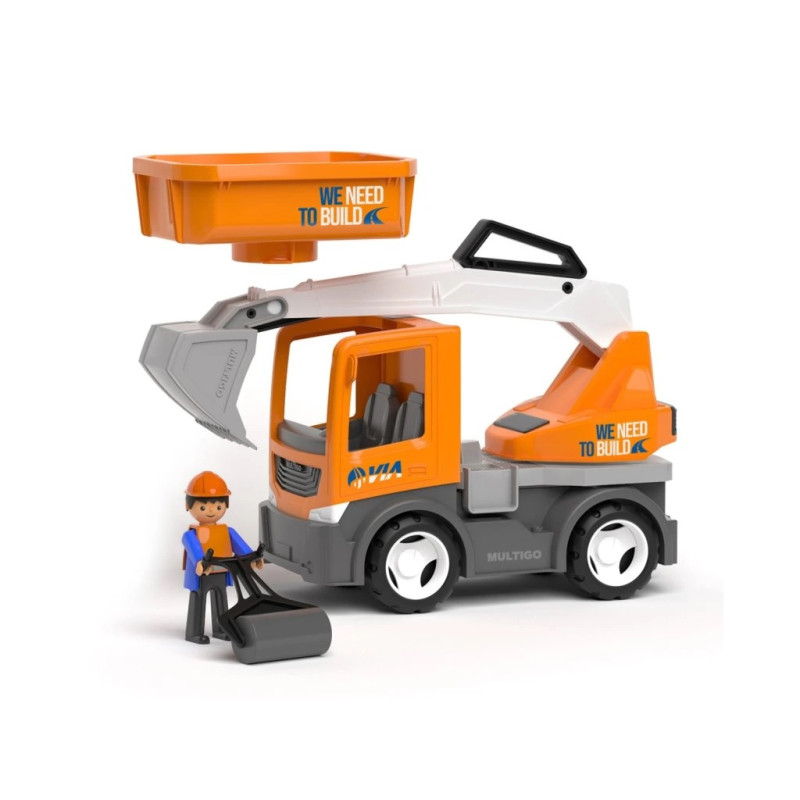 • 2 keičiamieji priedai: funkcionalus ekskavatorius ir platforminis sunkvežimis