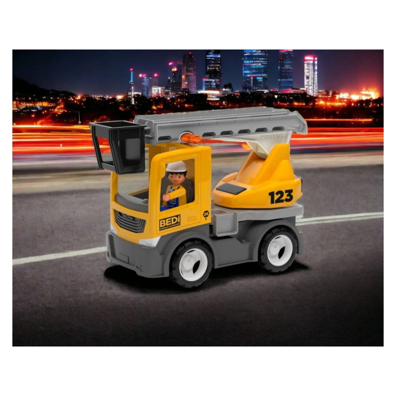 Dėka specialaus fiksavimo mechanizmo, vaikai gali lengvai keisti priedus ant bazinės transporto priemonės ir kurti naujus mašinų tipus.