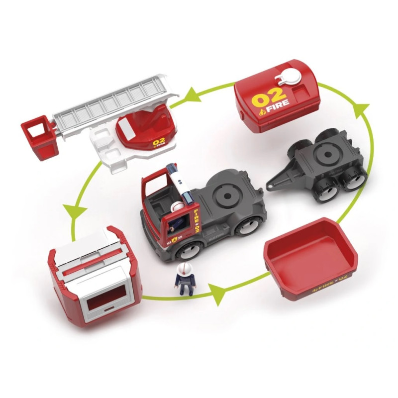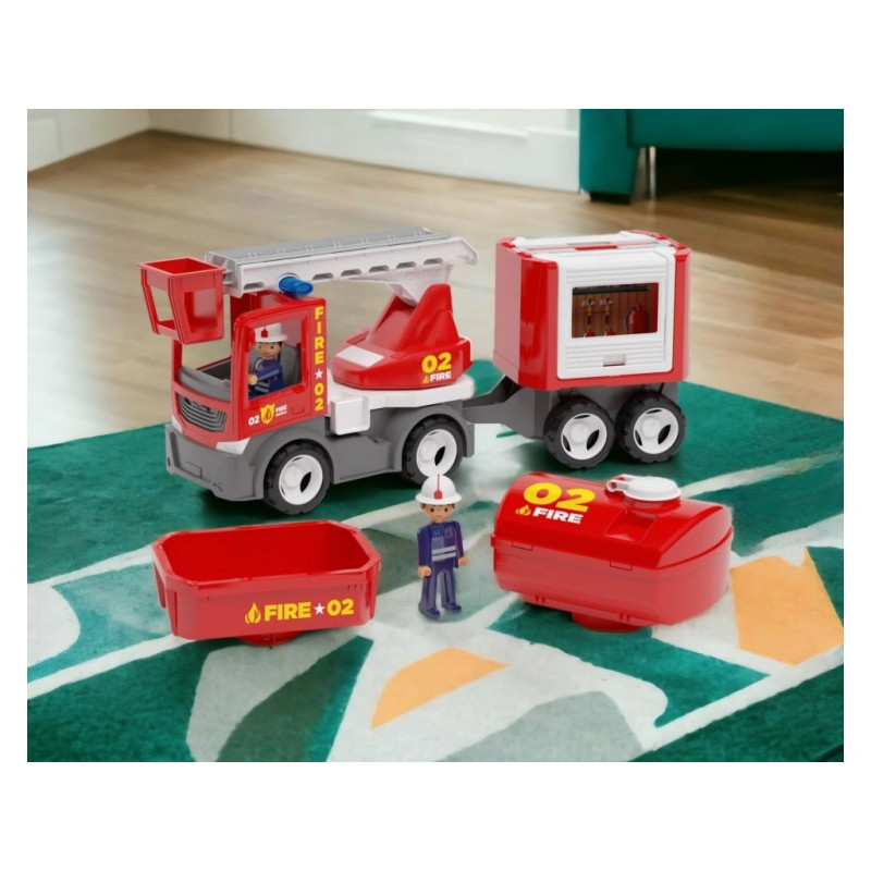 • 4 keičiami priedai: gaisrinės kopėčios, vandens bakas, atvira platforma ir gaisrinis skyrius su įranga