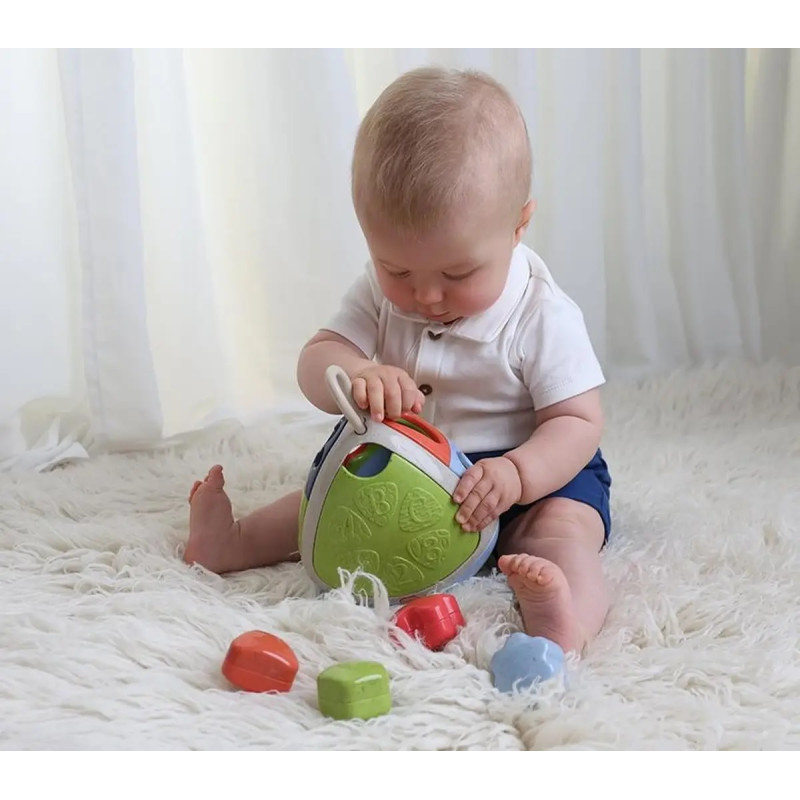 Naudodamas šešias skirtingas formas, kiekviena su atskiru barškučio garsu, vaikas gali mokytis spalvų, formų ir garsų, o tai stimuliuoja jo sensorinius gebėjimus. Žaislas taip pat turi dureles, kurias galima atidaryti, kad būtų lengva išimti formas ir greitai jas sugrąžinti atgal.