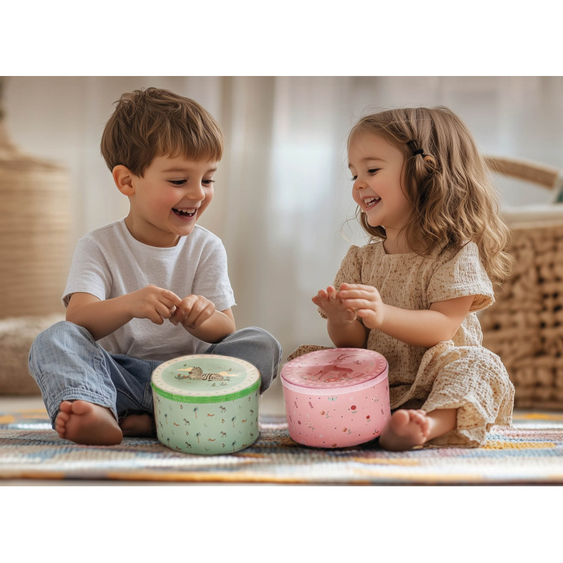 Edukacinis muzikinis žaislas kūdikiams nuo 12 mėnesių. Padeda lavinti ritmą, akių ir rankų koordinaciją bei kūrybinį mąstymą. Būgnelis sukurtas pagal Montessori dvasią, skatinant savarankiškumą ir natūralų tyrinėjimą.
