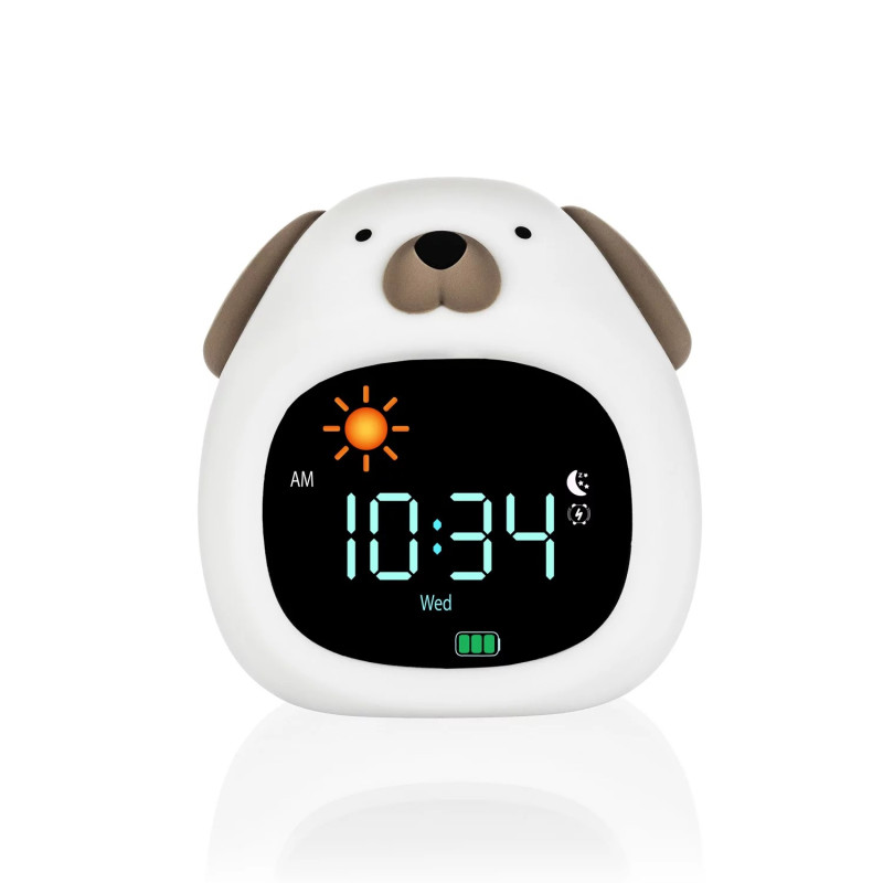 Silikoninis vaikiškas žadintuvas su naktine lempute ir muzika.